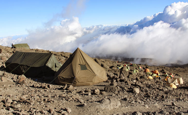 Today you will get the chance to view the Northern Ice fields from the western side of the mountain with some unusual views of Kibo. Our steady climb across the moorland of the Shira Plateau will help with acclimatization and we enjoy great panoramic views. Our destination today is the Shira 2 Camp. In the afternoon you will take an acclimatization walk then head back to camp for dinner and overnight.