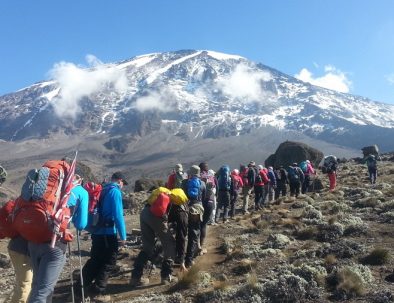 Day seven involves a steady incline up and over the Saddle which sits between the peaks of Kibo and Mawenzi Peak. Trekkers then continue walking south-west up to School Hut (4,800 meters). After arriving at School Hut you will be served an early dinner and then you should get some shut-eye as you will be awoken before midnight to start your summit attempt. Remember to prepare all your gear, including warm clothes, insulated water bottles, snacks, headlamp and camera before going to bed.