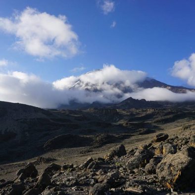 Day five involves a moderately steep climb out of Moir Valley. Trekkers can take a small detour here to climb the summit of Little Lent Hill at 4,375 meters before returning to the Northern Circuit trail. From here the route follows a series of inclines and declines, skirting around the northern slopes of Kibo to Buffalo Camp (4,020 meters).The trek gives great vistas out across the plains that lie north of Kilimanjaro and stretch out to the Kenyan / Tanzanian border. You will arrive at Buffalo Camp just after midday, where you will have lunch and have time to rest after a long day hiking..